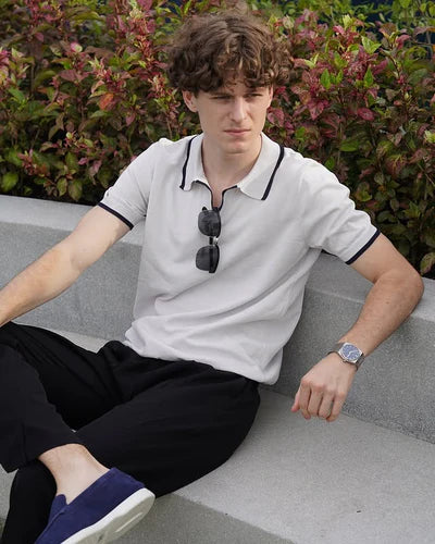 Men's Lazy Printed Japanese Solid Color Short-sleeved Polo Shirt